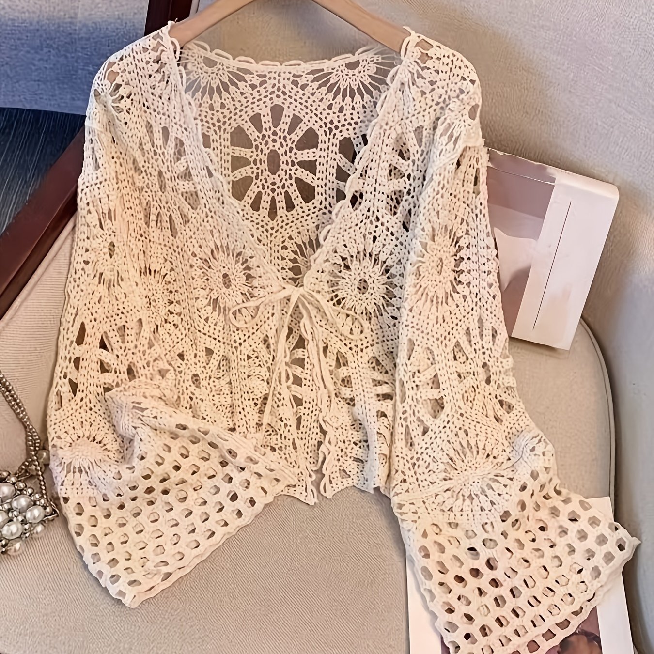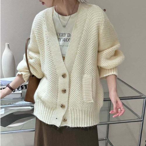 TEMU 솔리드 컬러 오픈워크 긴팔 가디건