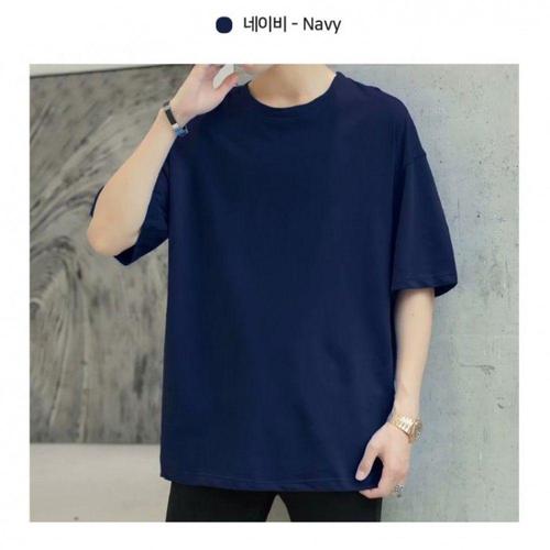 남성용 여름용 오버핏 캐주얼 티셔츠 5부 반팔 상의 WFLLYUO