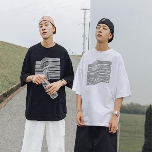 [엄지척]남자 오버핏 심플 반팔 티셔츠 5부 루즈핏 여름 상의_20429372_667501