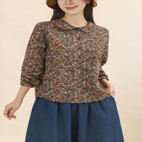 [디얼마미][디얼마미] 디어 플라워 린넨 셔츠 /마담 미시 중년 여성 빅사이즈 40대 50대