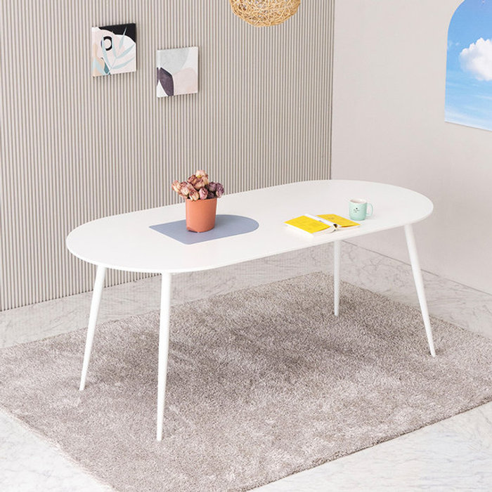 화이트 타원 식탁 프리츠한센st 입식테이블 6인 실버발 70x70x75cm 식당 사각
