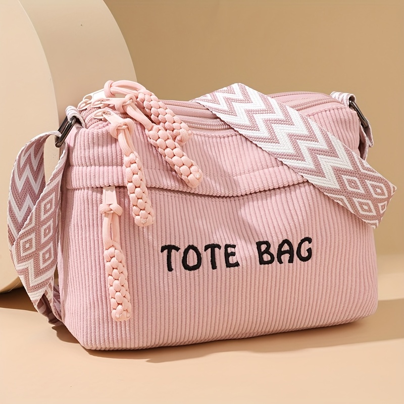 TEMU 여성을 위한 새로운 코듀로이 멀티 포켓 캐주얼 숄더백. 길이 조절이 가능한 스트랩이 특징입니다. 이 크로스바디 백은 개인 용품을 보관하기에 완벽하며 휴대폰 가방 또는 동전 지갑으로 사용할 수 있습니다. 데일리 출퇴근, 쇼핑에 적합합니다.