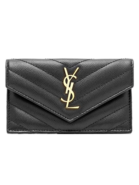 구템즈 25FW 생로랑 금장 모노그램 마틀라세 플랩 카드지갑 612808 BOW01 1000