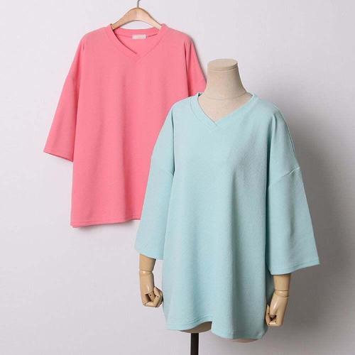 빅사이즈솔리드티 G458L409 감성루즈브이넥7부티 NO