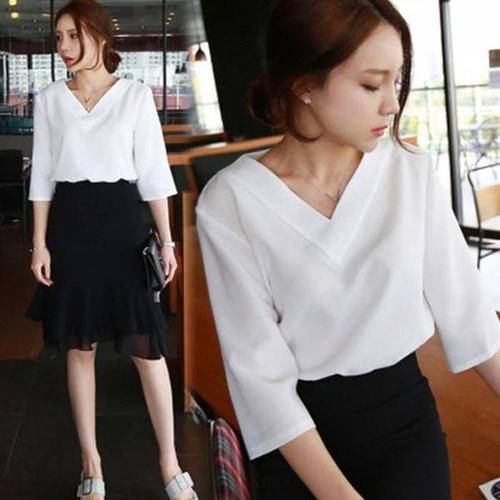 [셀러허브_여성트랜드패션]X T001 LK 여성블라우스 7부셔츠 브이넥 3컬러