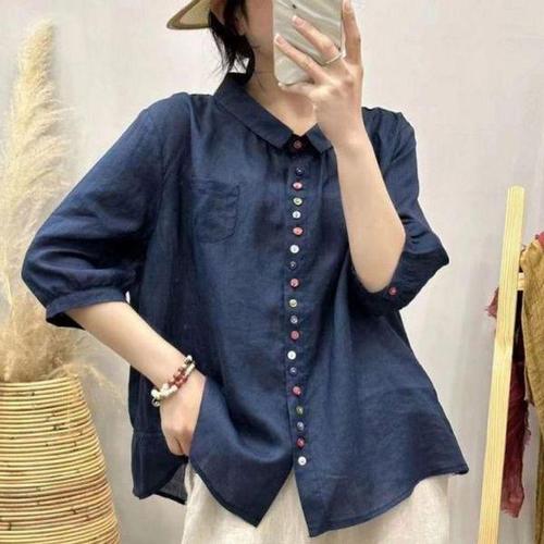 [에이치플러스몰]여성여름블라우스 루즈핏 데일리 여성셔츠 7부 클래식