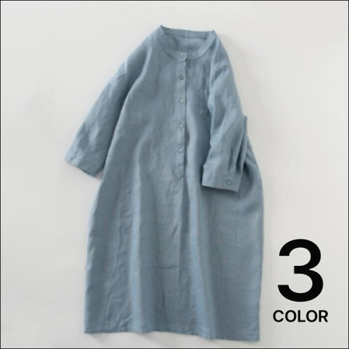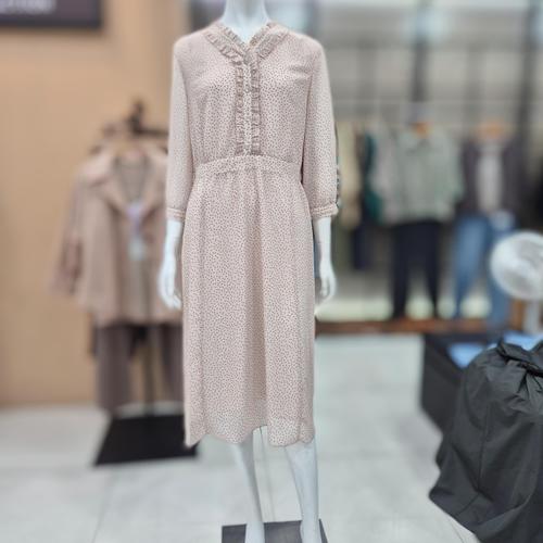 [비꼴리끄(여성)]린넨 프린트 라운드 카라 칠부 원피스 B222WO3191