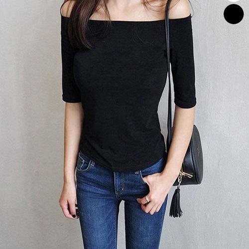 [셀럽하우스]여자 ACWE9240 오프숄더 여리여리 입술넥 7부 티셔츠 슬림핏