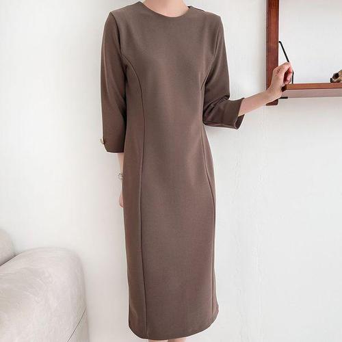 [옷자락] 여성 가을하객룩 버튼 칠부 절개 라인 스판 롱원피스