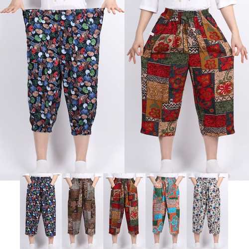 국산 여성 허리밴딩 인견 7부 팬츠 YF-WPT-20668-플라워