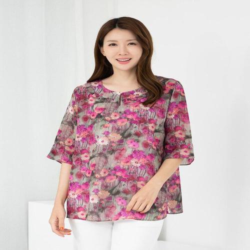 [모슬린]엄마옷 인견 라운드 7부 블라우스 614FGH215 마담/중년여성/빅사이즈/50대/60대