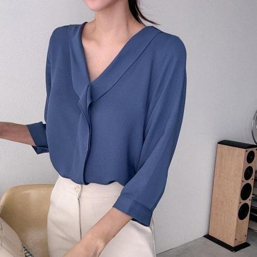[다잇템][다잇템] 여성용 칠부 V넥 베이직 소매 마원단 프릴 블라우스_21549775_588872