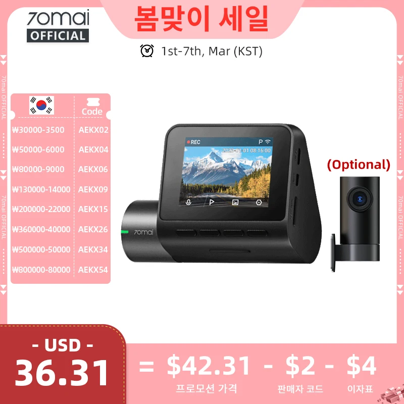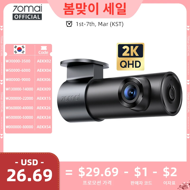 70mai 대시캠 M310 플러스 2K 1440P 143 ° FOV F1.55 스마트 음성 제어 24시간 주차 감시 야간 시야 70mai M310 Plus 2K 차량용 블랙박스