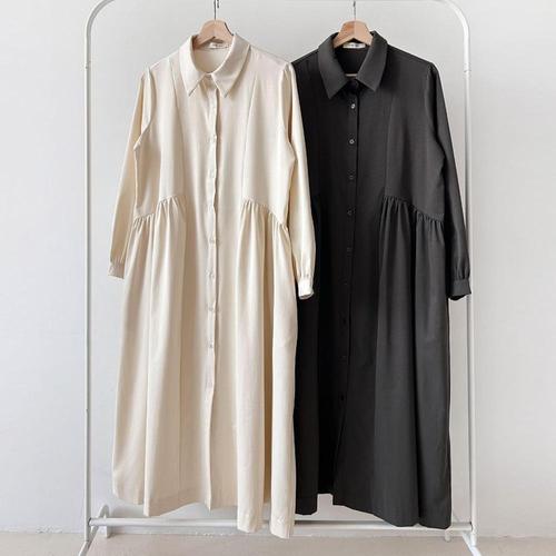 [옷자락] 여성 간절기 카라넥 퍼프 77사이즈 긴 원피스