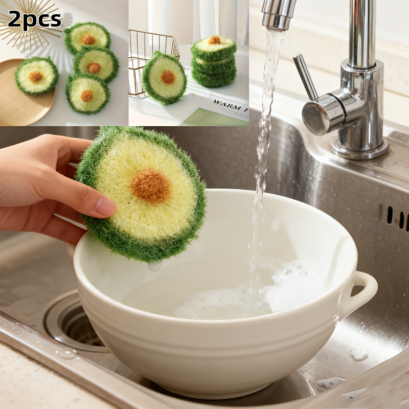 TEMU 2개, 폴리에스터 손수제작 천, 창의적인 과일 디자인의 식기건조타월, 세탁 가능한 청소브러시, 청소용품, 4.52인치