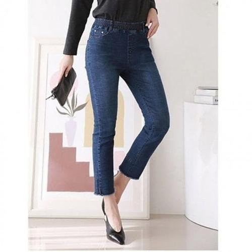 [582] 8부 밴딩 데님 청 세미 와이드 팬츠 연청 진청 바지