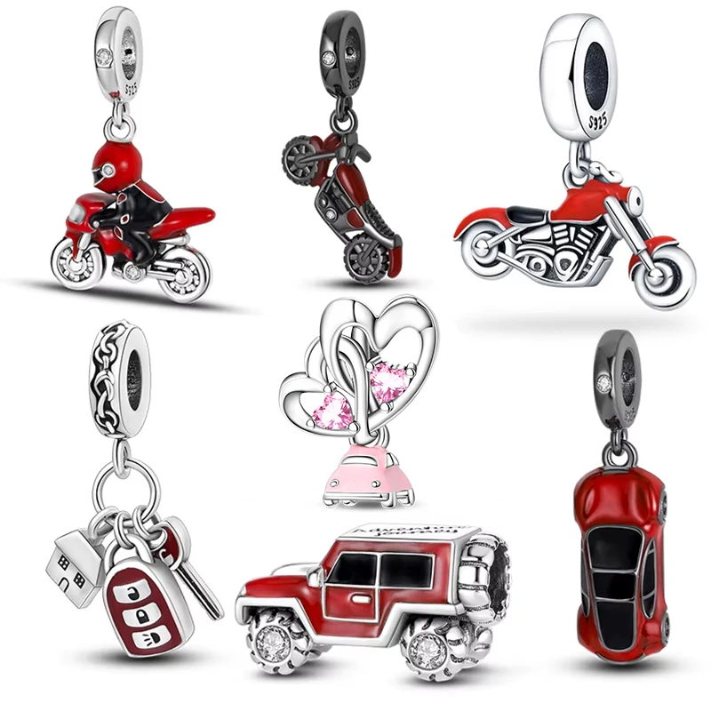 패션 100% 925 실버 레드 오토바이 스포츠카 SUV 버스 여성을위한 매력 비즈 DIY 팬 팔찌 파티 생일 쥬얼리에 맞게