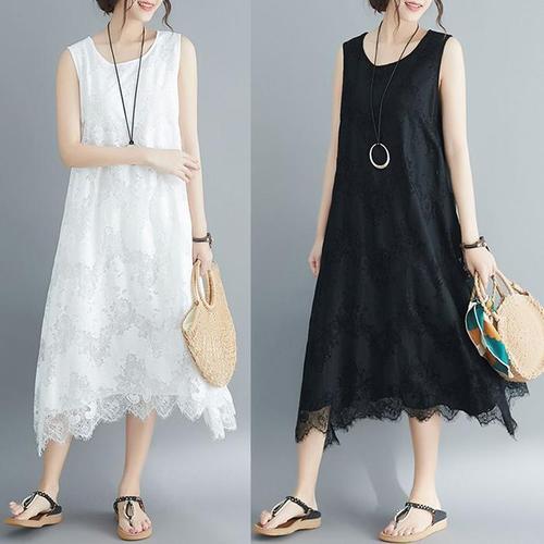 [라일리의류] Rly G126633_클래식 레이스나시 A라인 민소매 롱원피스