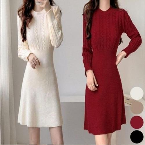 [엄지척]꽈배기 가을 봄 라운드넥 A라인 밴딩 미니 원피스_19802619_667501