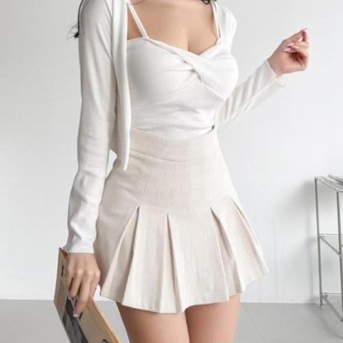 [탱커스]슬림 라운드넥 니트 A라인 스커트 셋업 (TW4OP007L0)