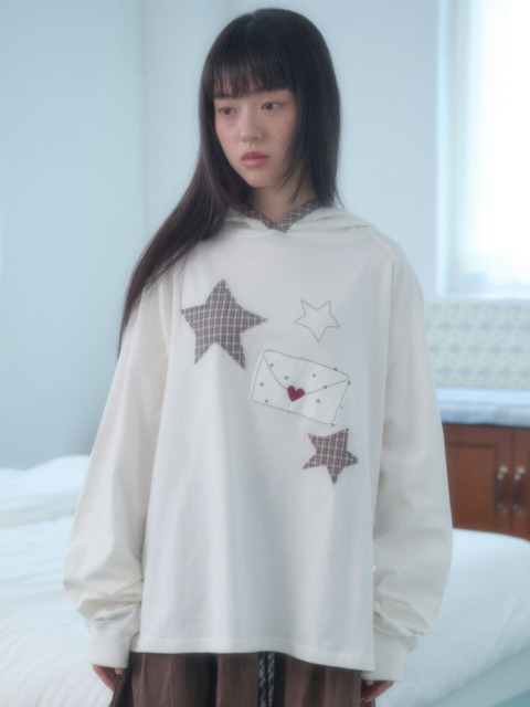 [엠블러] 엠블러 남여공용 By Letter 아플리케 자수 래글런 후드 롱슬리브 AJS303-아이보리