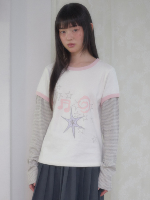[엠블러] 엠블러 남여공용 Music Star 자수 레이어드 롱슬리브 AJS304-아이보리