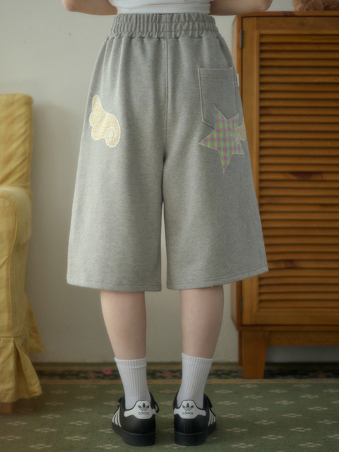[엠블러] 엠블러 남여공용 Angel Star Patch Bermuda Pants 원턱 스웨트 숏츠 반바지 ASP901-멜란지