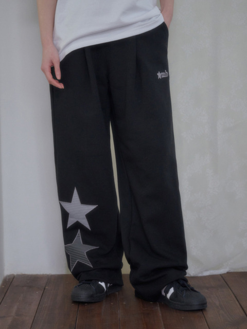 [엠블러] 엠블러 남여공용 Starlight 아플리케 자수 핀턱 2-Way 와이드 트레이닝 스웨트 팬츠 AP1001-블랙