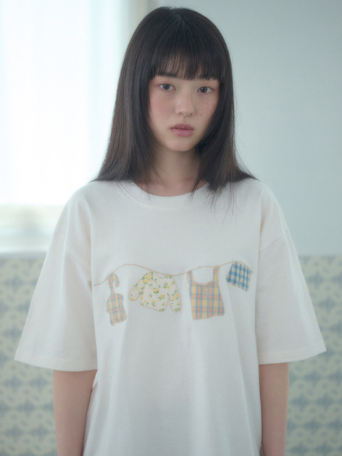 [엠블러] 엠블러 남여공용 A Clothes Line 아플리케 자수 반팔 티셔츠 AS1310-아이보리