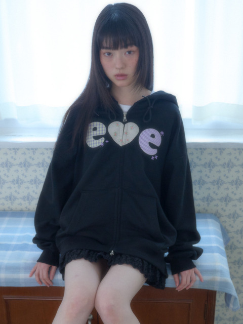 [엠블러] 엠블러 남여공용 Check Flower 자수 후드 집업 AZIP901-블랙