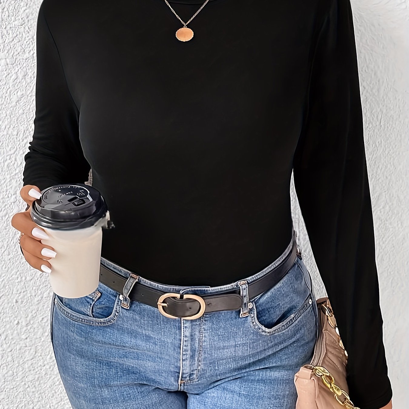 TEMU 플러스 사이즈 단색 컬러 터틀넥 티셔츠, 우아한 긴팔 상의 봄 & 가을, 여성 플러스 사이즈 의류