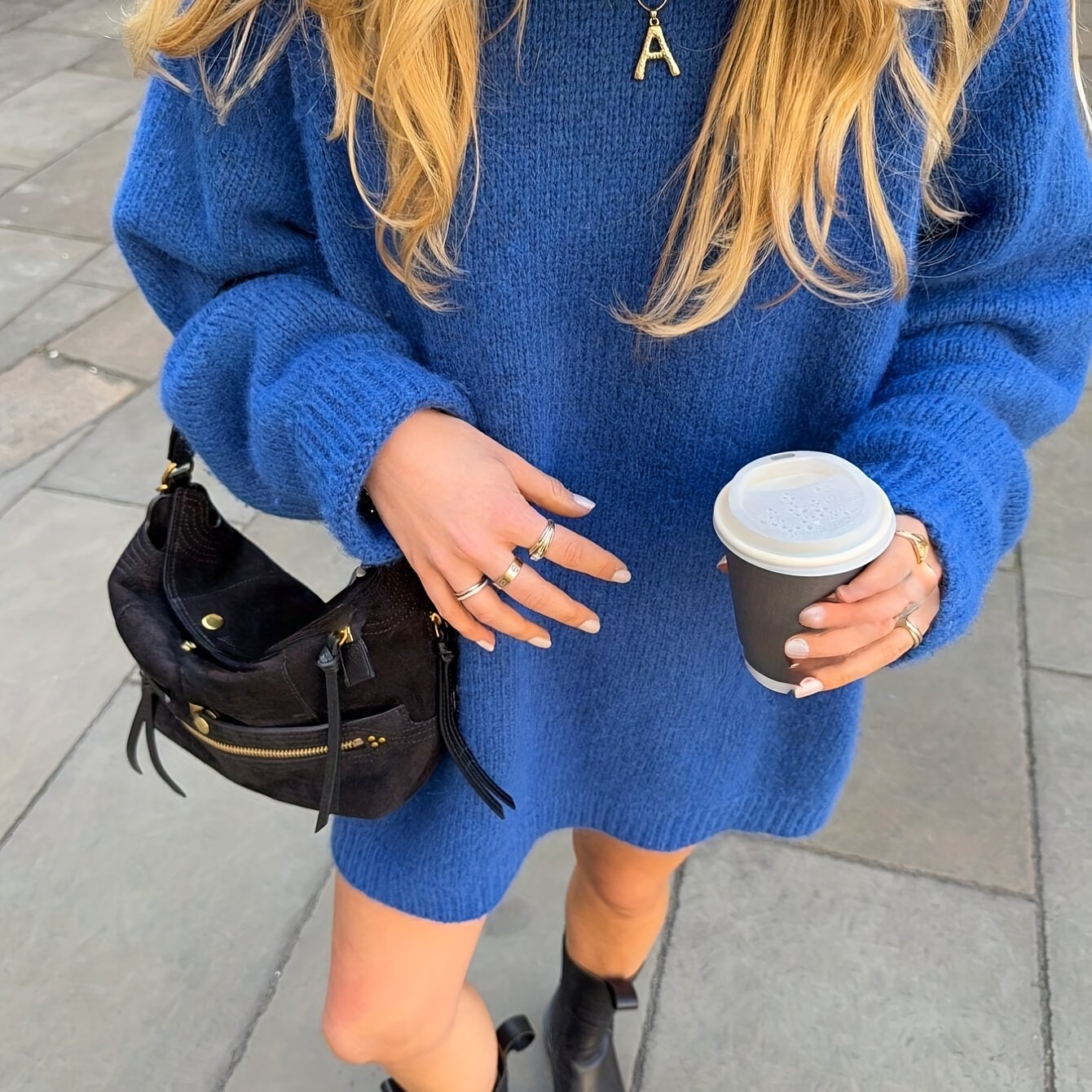 TEMU 여성용 오버사이즈 레트로 라운드넥 스웨터 - 소프트 블루 H-라인 풀오버, 가을/겨울을 위한 포근한 겨울 스웨터, 캐주얼 엘레강트 레이어링 아이템 (손세탁/드라이클리닝) - 논스트레치 라운드넥 긴팔 블라우스, 여성용 스웨터,여성용 스웨터,여성용 니트 탑,여성용 가을 스웨터