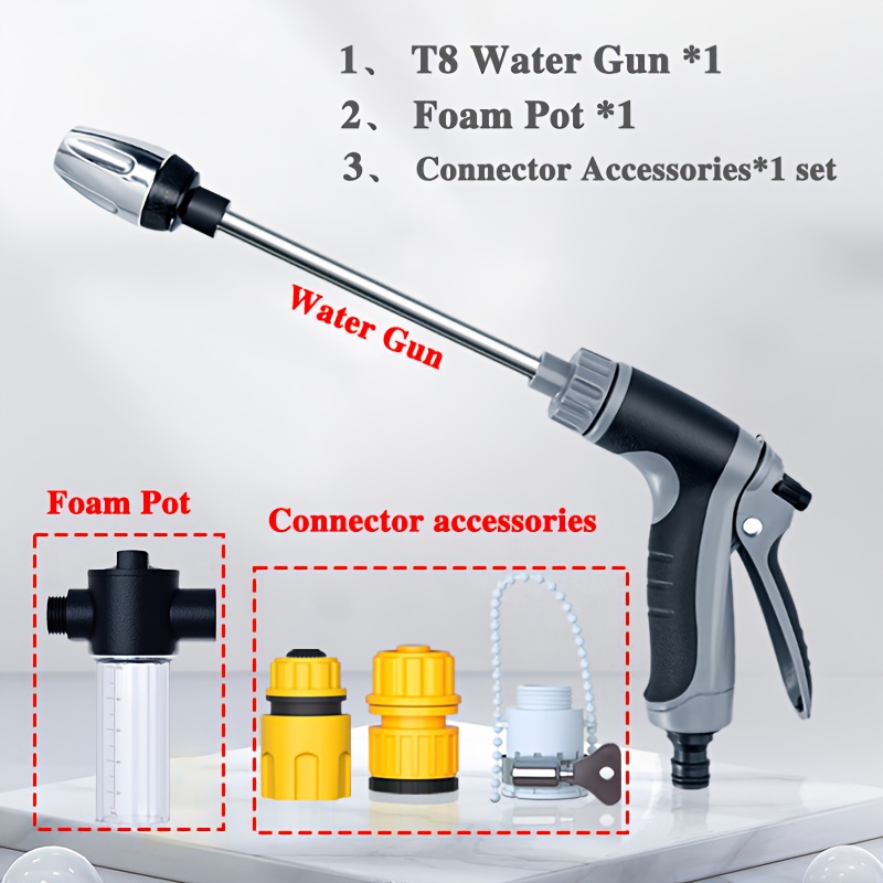 TEMU 3개 고압 세차 노즐 세트, 정원 호스 스프레이어, 전기 불필요 긴 손잡이 분리형 청소 도구