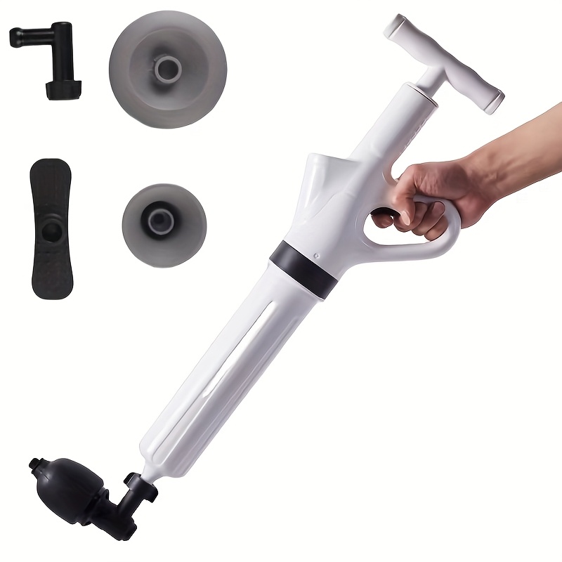 TEMU 강력한 배수관 청소 키트, 5가지 노즐 및 압력 게이지 포함, 전기 불필요, 고착된 변기/싱크대/샤워기 막힘 제거, 내구성 강한 ABS 도구
