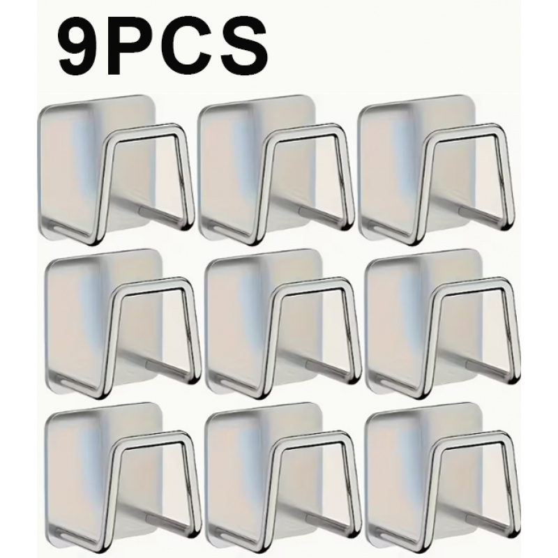 TEMU 스테인리스 스틸 다기능 브라켓 9개 세트 - 스펀지 및 세면대 홀더, 녹 방지 및 방수 자체 접착식 후크 포함 - 주방 및 욕실 정리용, 간편한 설치, 실용적인 후크, 다용도 후크