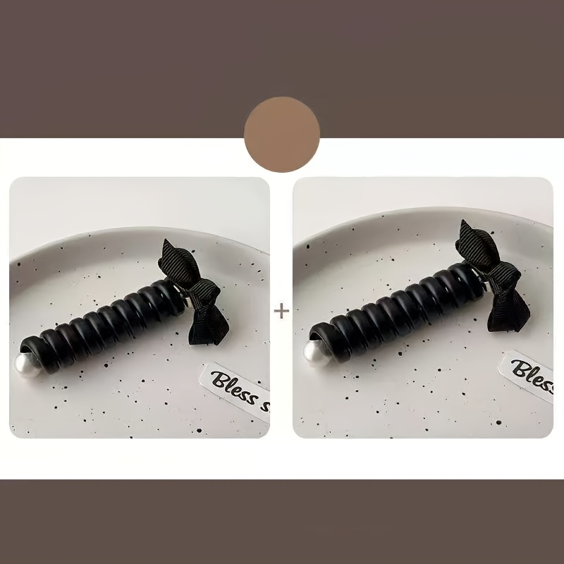 TEMU 여성용 파티 헤어 액세서리, 모발에 손상 없는 패셔너블하고 심플한 기질의 인조 진주 리ボン 폰줄 헤어 루프 2개 세트