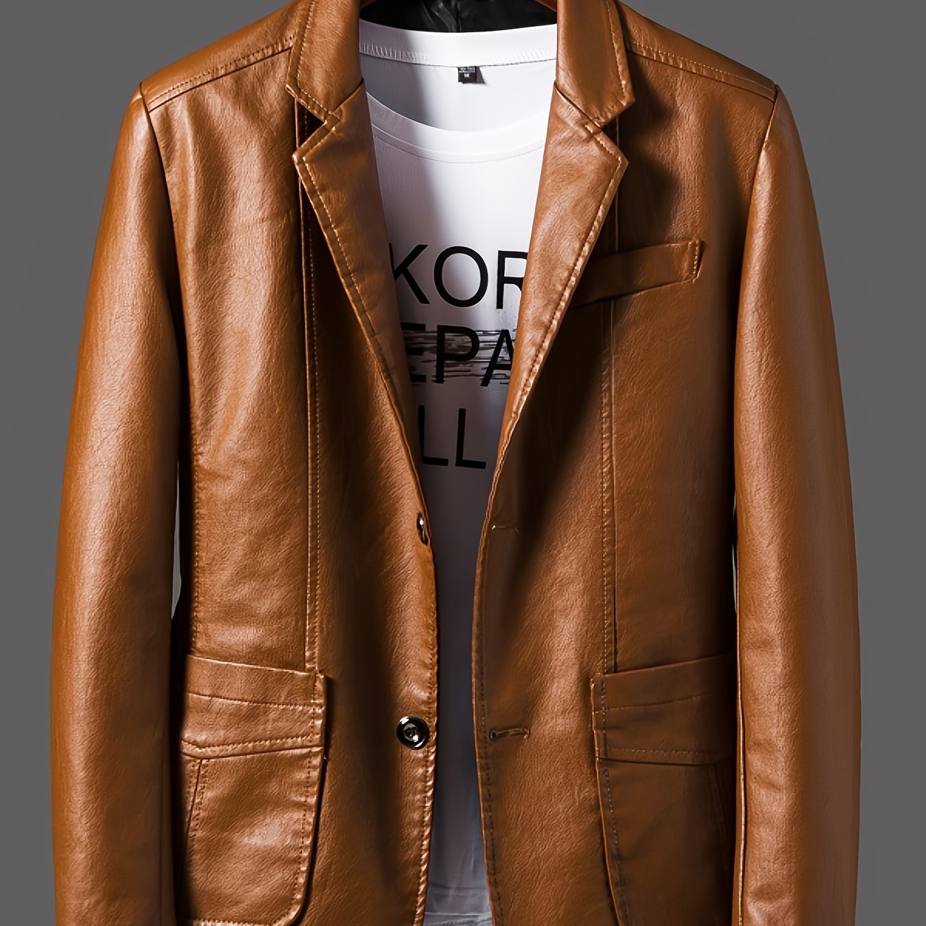 TEMU 남성용 슬림핏 캐주얼 패션 - 마룬 PU 가죽 재킷 포켓 포함, 단추 앞면, 긴 소매, 캐주얼 의상에 완벽한 폴리에스터 섬유 코트