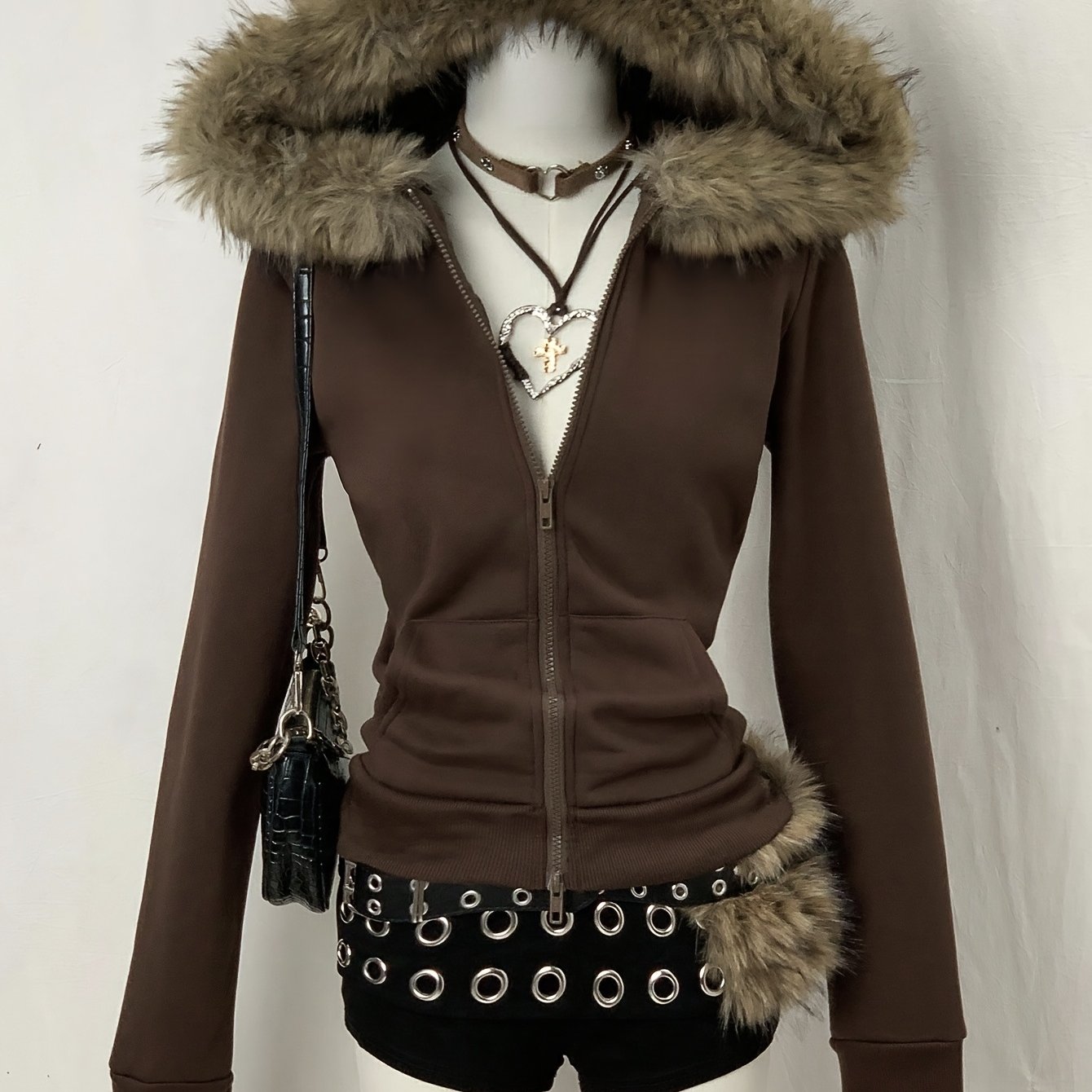TEMU 여성용 패션 긴소매 퍼리 후드 집업 후드티