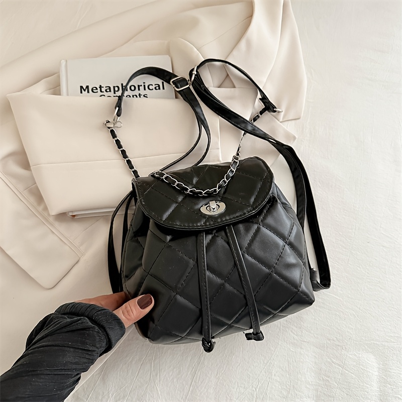 TEMU 트렌디한 기하학적 드로스트링 버킷백 - 여성용 다목적 숄더 & 크로스바디 디자인, 데일리 커뮤트 & 쇼핑에 완벽 - 크림/블랙 색상|크로스백|테무쇼핑|여행용크로스백