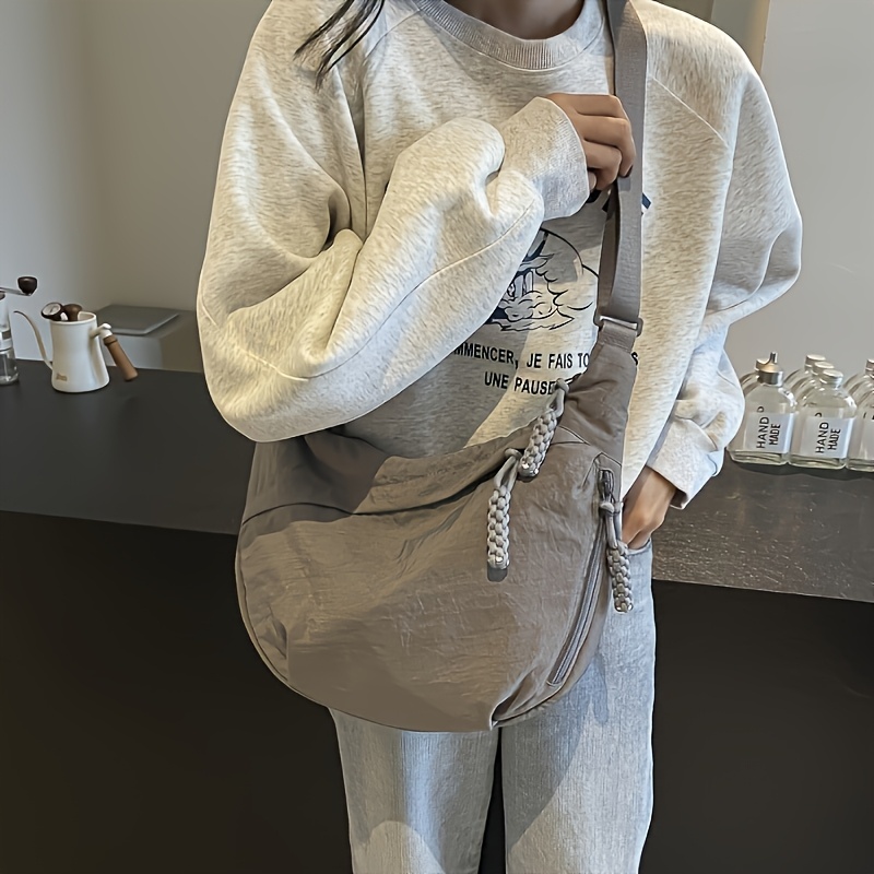 TEMU 여성용 우아한 크로스바디 덤플링 백 - 가볍고 접이식 나일론 핸드백, 프린지 태슬 디테일 & 퀼팅 스타일, 조절 가능한 스트랩, 대용량 일상/출퇴근용 - /Ginger //|가방|크로스백|보부상가방