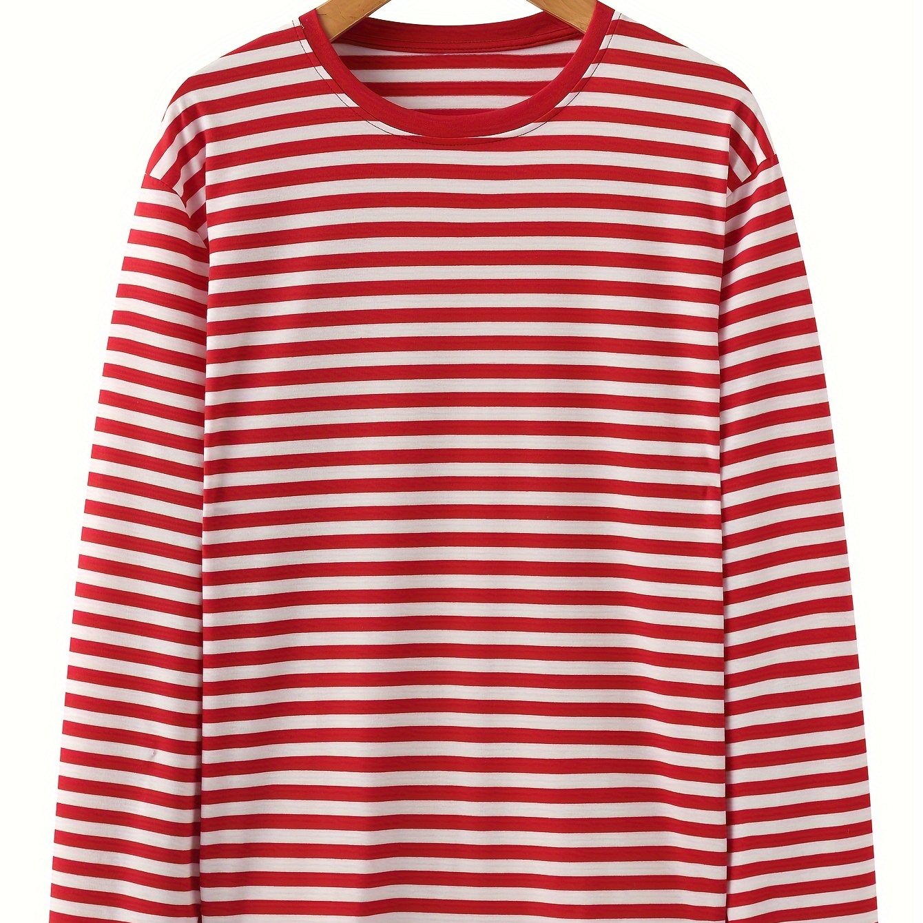 TEMU 남성용 캐주얼 긴팔 라운드넥 티셔츠 - 가로줄무늬 단색, 봄/가을 레이어드용, 사무실부터 주말까지 착용 가능 - 편안한 스트레치 원단