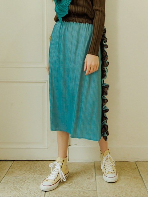 [피네플리츠] 프릴 배색 플레어 스커트 스카이 블루