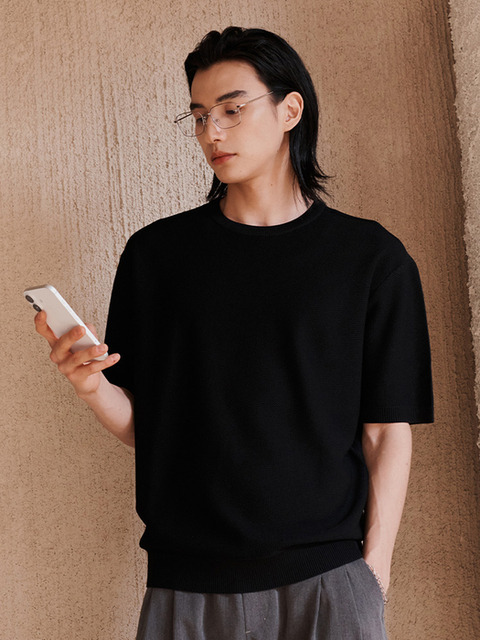 [애드호크] 남성 썸머 베이직 라운드 니트 (BLACK) (HB4SKA3)