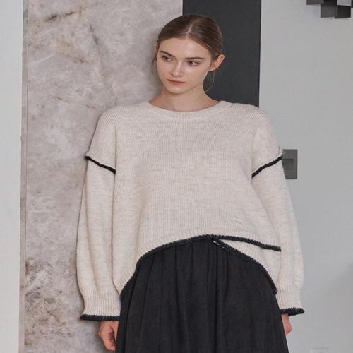 [미니멈에브리데이][미니멈 에브리데이]사선 배색 라인 포인트 울 니트 (EB3KT026D)