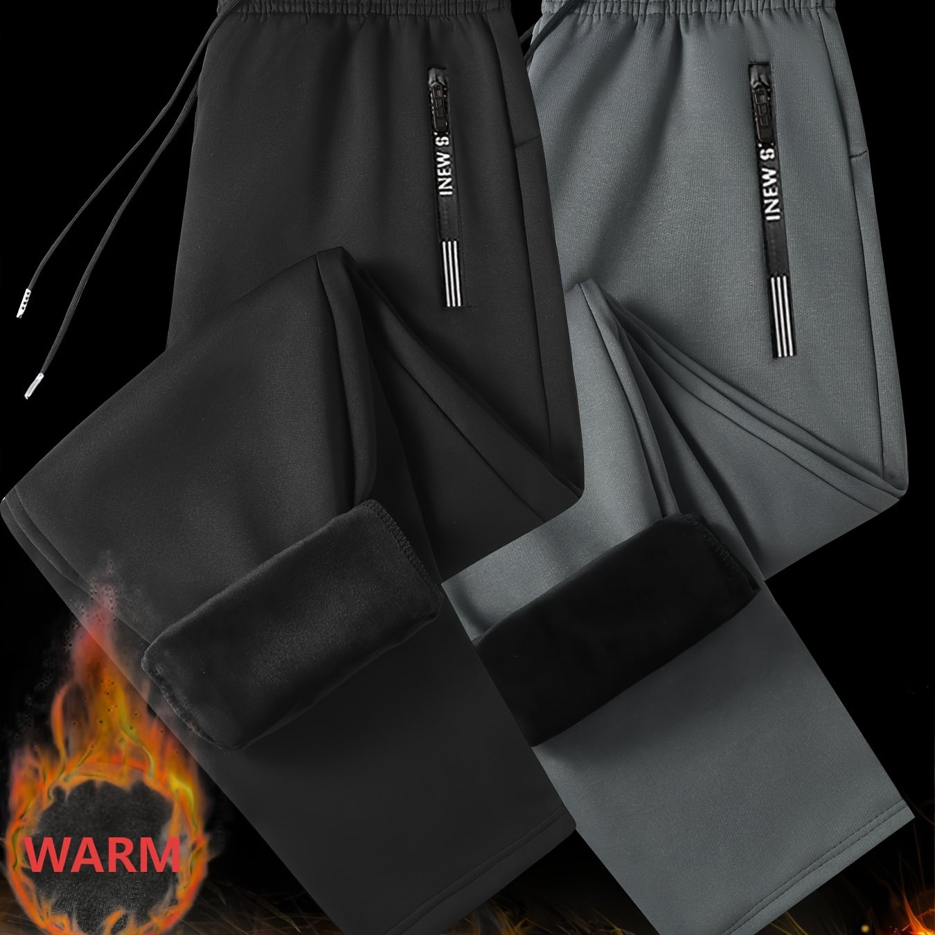 TEMU 남성용 겨울 바지 - 따뜻하고 캐주얼한 긴 바지, 조절 가능한 드로스트링 허리, 야외 활동 및 추운 날씨에 적합한 레귤러 핏, 겨울 캐주얼 웨어 | 핏팅 팬츠 | 지퍼 디테일 팬츠