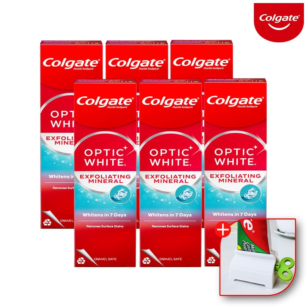 미백 화이트닝 충치예방 불소치약 옵틱화이트 엑스폴리에이팅 100gx6개+치약짜개