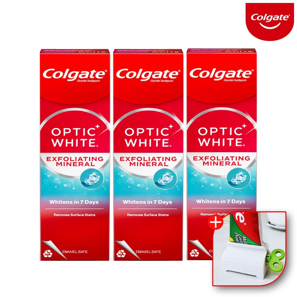 미백 화이트닝 충치예방 불소치약 옵틱화이트 엑스폴리에이팅 100gx3개+치약짜개