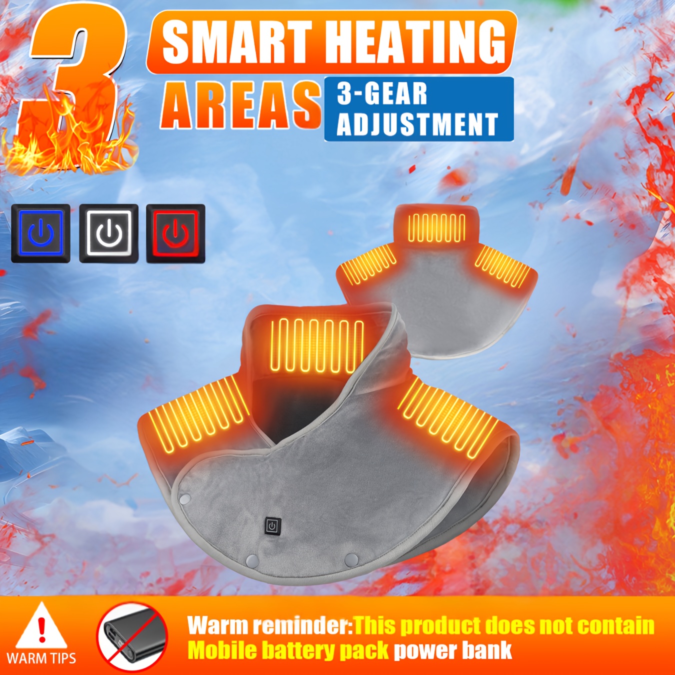 TEMU CHANGEOWN 히팅 스카프 & 칼라형 쇼울 - 한국 스타일, 3단계 온도 조절, 3존, 배터리 미포함 - 그레이/블루, 남녀공용 겨울용 보온, 세탁기 사용 가능, 선물 추천