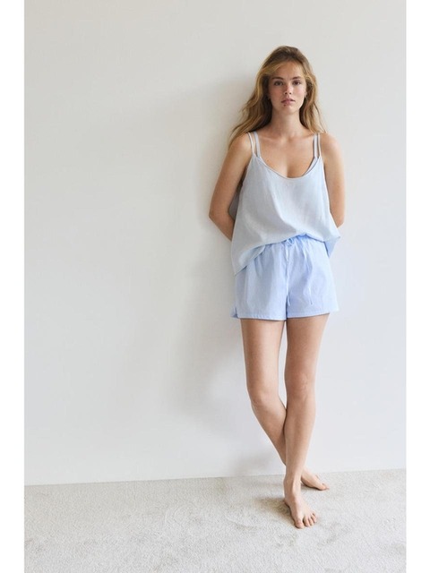 [에이치엔엠] 코튼 포플린 파자마 쇼츠 2벌 세트 라이트 블루/스트라이프 1154451016