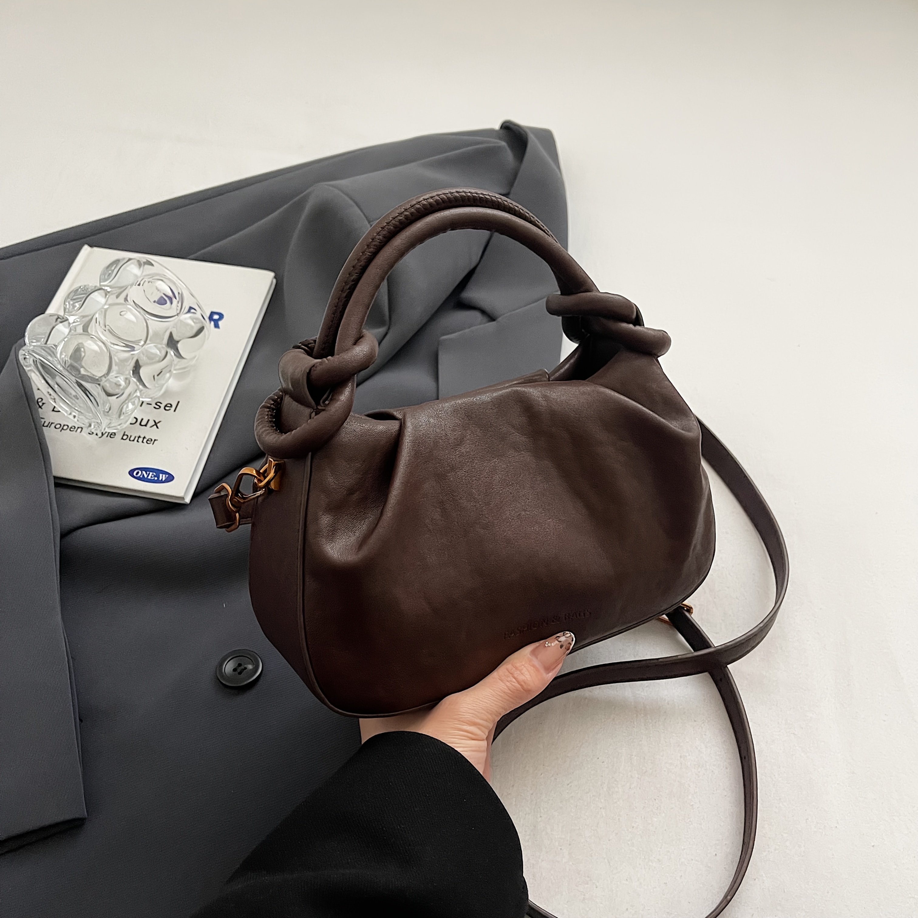 TEMU 스타일리시 솔리드 컬러 빈티지 다용도 여성 크로스바디 백, 고급스러운 느낌의 새로운 심플 캐주얼 숄더백, 핸드백으로도 사용 가능, 여성용 핸드백, 백 코피, 브라운 스몰 핸드백, 브라운 클러치 백, 크로스바디 백, 여성용 백, 고급스러운 클루드 브랜드 백, 벨벳 핸드백/숄더백, 매듭 가방|크로스백|지갑